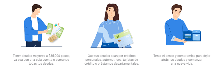 - Tener deudas negociables por valor mayor a $35,000 pesos,